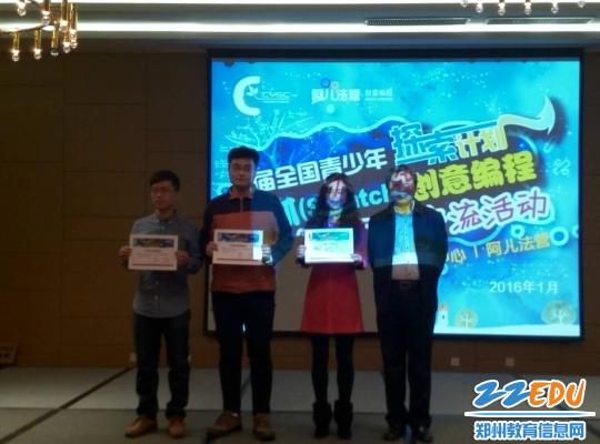 近日,首届全国青少年探索计划魔抓(Scratch)创意编程大赛决赛暨展示交流活动在北京举行, 共有来自全国29个省、自治区、直辖市的50余名教师、学生参与。经过初赛、复赛和现场决赛,郑州42中学生赵天雨《火柴人出坏人》作品获得“作品讲述奖”,石毅老师荣获“十佳优秀辅导教师奖”,河南省青少年科技中心荣获“十佳优秀组织单位奖”。