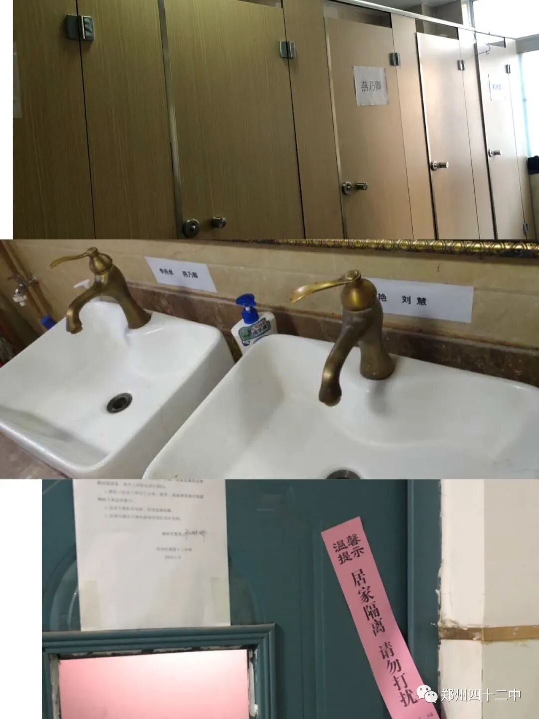 随着郑州防“疫”工作日益稳定,陆陆续续有一些青年教师返郑。按照社区要求,学校领导精心做好相关隔离工作,为了让我们充分隔离,学校提前进行全面消杀,对寝室进行了编排,确保单人单间;卫生间标明序号,确保每人都有单独的卫生间;洗漱用的水龙头,都贴上标签,具体安排到每个人。