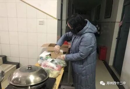 于红莲校长亲自为隔离教师准备丰富的食材,确保隔离教师一日三餐营养丰富