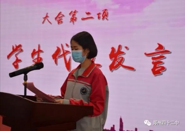 教师代表和琳娜从九年级班主任的角度告诉同学们,在这仅剩的一百天要加强体育锻炼,学会拒绝诱惑,端正学习态度,奋力坚持到底。要学会珍惜当下,努力拼搏,不负韶华,方能翻开人生精彩辉煌的篇章,书写青春岁月绚丽的一笔。随后,学生代表陈阳带领全体学生宣誓,21位九年级教师也通过视频的方式,向学生们传达了殷切的期望和美好的祝福。一句句温情似水的关怀,如春雨滋润学生的心田;一声声振奋人心的呐喊,如同冲锋的号角激励学生奋进。
