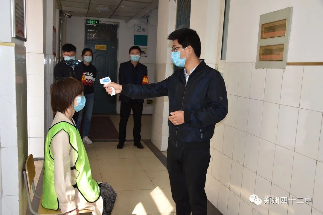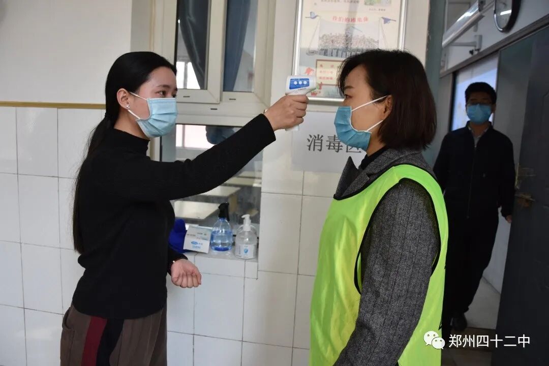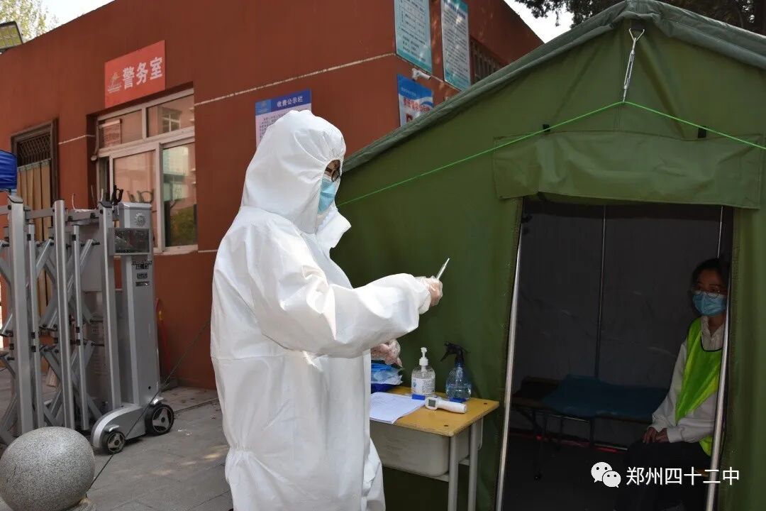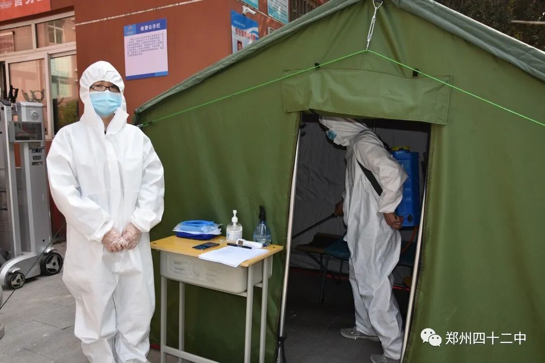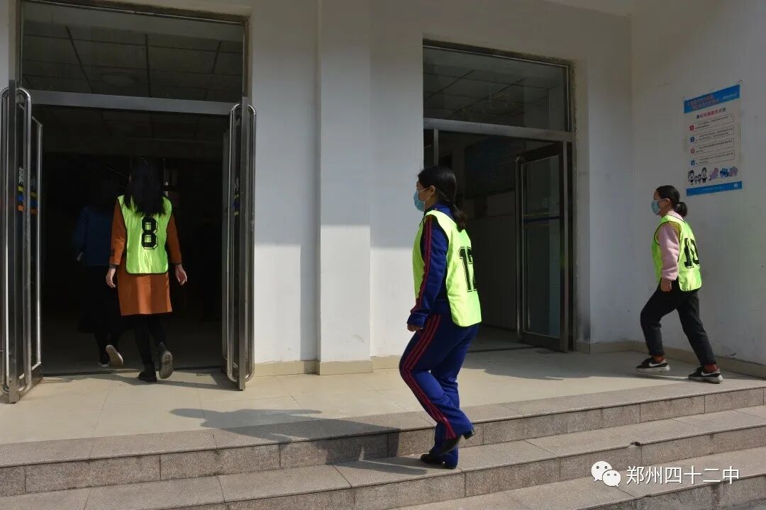 黄涛校长安排演练任务 于红莲校长强调演练注意事项 模拟学生入校前间隔1.5米排队 解说员白丽丽老师进行解说演练 学生上交健康承诺书和体温监测表并用免洗洗手液洗手 模拟学生进校时测量体温 模拟学生出现异常体温情况 校医对体温异常的学生再次测量体温 后勤人员对隔离帐篷进行消杀处理 后勤人员对校医的防护服进行消杀 模拟学生有序进入班级 进班前由班主任测量体温 进班前用免洗洗手液进行消毒 任课教师讲解入班安全第一课 模拟上课时学生出现异常情况 任课教师测量异常学生体温 确认学生体温异常后电话通知校医和联络员 由校医对异常学生再次确认体温 校医询问学生的旅居史和健康状况 对学生用过的体温计进行消毒处理 校医电话通知社区卫生部门 学校后勤人员对校医的防护服进行消毒处理 在值班老师的安排下有序认真洗手 再次入班前进行手部消毒 于红莲校长总结演练情况并提出要求 演习后,于红莲校长进行了全面总结,对本次演练中的亮点进行总结:白丽丽老师解说到位,校医张春燕老师对学生情况询问到位、报告及时,校门口和班级两个入门关口防控到位等;也提出了下一步努力的方向,计划要更加详尽,消杀更加全面,确保学生在校平安。 疫情防控无小事,郑州42中全体师生严阵以待,为开学做好充分地准备。春暖花开,期待大家早日相聚在美丽的校园