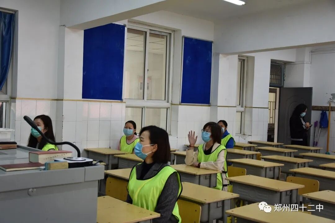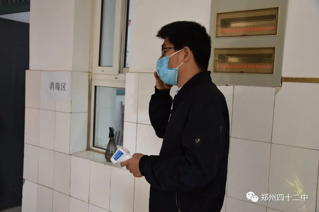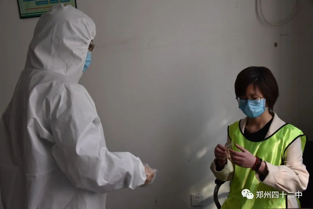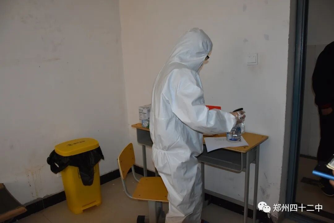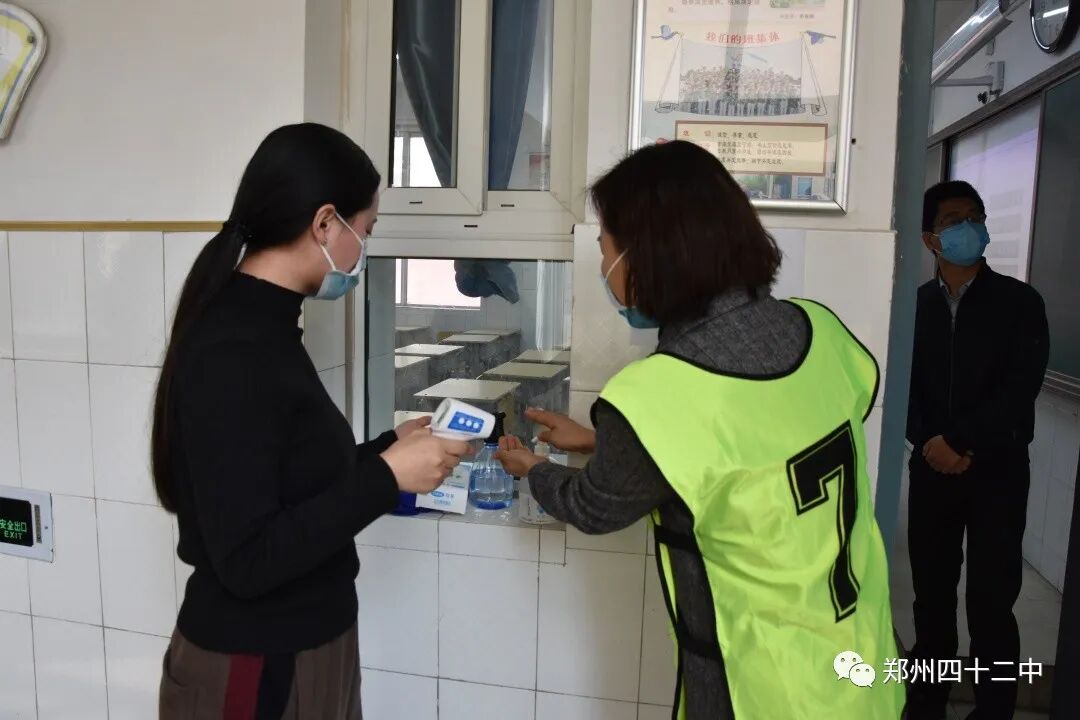 黄涛校长安排演练任务 于红莲校长强调演练注意事项 模拟学生入校前间隔1.5米排队 解说员白丽丽老师进行解说演练 学生上交健康承诺书和体温监测表并用免洗洗手液洗手 模拟学生进校时测量体温 模拟学生出现异常体温情况 校医对体温异常的学生再次测量体温 后勤人员对隔离帐篷进行消杀处理 后勤人员对校医的防护服进行消杀 模拟学生有序进入班级 进班前由班主任测量体温 进班前用免洗洗手液进行消毒 任课教师讲解入班安全第一课 模拟上课时学生出现异常情况 任课教师测量异常学生体温 确认学生体温异常后电话通知校医和联络员 由校医对异常学生再次确认体温 校医询问学生的旅居史和健康状况 对学生用过的体温计进行消毒处理 校医电话通知社区卫生部门 学校后勤人员对校医的防护服进行消毒处理 在值班老师的安排下有序认真洗手 再次入班前进行手部消毒 于红莲校长总结演练情况并提出要求 演习后,于红莲校长进行了全面总结,对本次演练中的亮点进行总结:白丽丽老师解说到位,校医张春燕老师对学生情况询问到位、报告及时,校门口和班级两个入门关口防控到位等;也提出了下一步努力的方向,计划要更加详尽,消杀更加全面,确保学生在校平安。 疫情防控无小事,郑州42中全体师生严阵以待,为开学做好充分地准备。春暖花开,期待大家早日相聚在美丽的校园