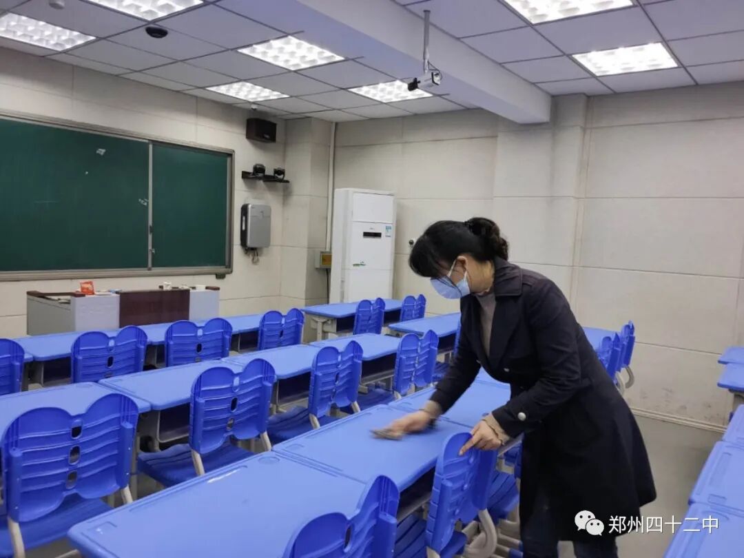 教师们齐动员,对办公室、教室、会议室、图书馆、厕所、各功能教室等重点场所进行彻底卫生大扫除,同时针对疫情防控特殊时期,做好定时消毒、检疫检验和健康防护,对教室、厕所等重点场所定时消杀通风工作,坚决把疫情阻挡在校园之外,确保师生生命安全和身体健康。