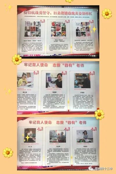 在这次新冠肺炎疫情中,郑州42中全校教师严格坚守师德规范,科学防控理性引导,主动做好家校沟通,积极参与线上教学,高质量完成教学工作,展现出担当作为、百折不挠、勇于创新、共克时艰的良好风貌 。郑州42中积极发掘身边的先进典型,尤其是在抗疫过程中涌现的先锋模范,利用新媒体平台、宣传阵地加大宣传,用先进典型引领人、鼓舞人、教育人,营造出良好师德教育氛围。