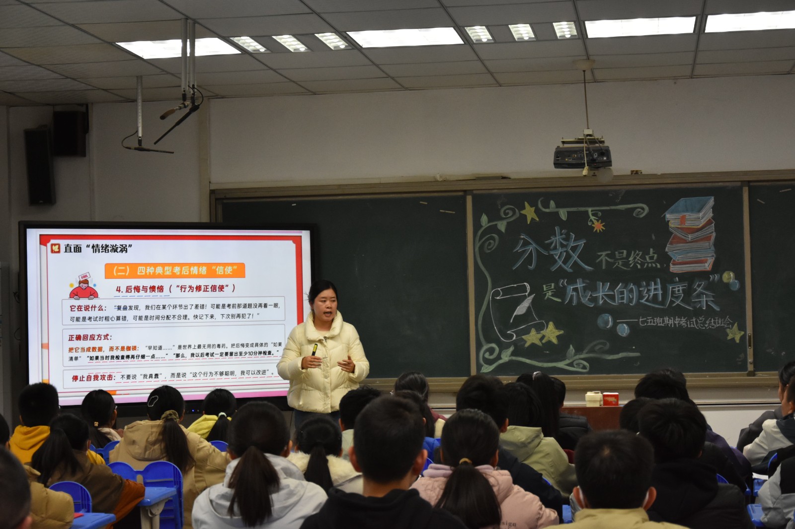 此次主题班会展示课分别由寇志华和冷娟两位班主任执教。寇老师通过分析班级卫生问题的表象,引发学生反思,进而学会主动承担责任,提升个人修养;冷老师从班级调查入手,通过让学生直面“情绪漩涡”,从而改进学习方法,调动积极情绪,引导学生做科学学习者。