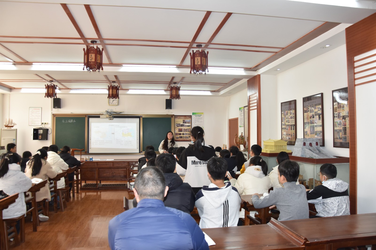 此次活动分别由语文组席一鸣、李珍珍和政史地组李星月、卢瑶瑶四位老师主讲。四位老师的教学环环相扣,精彩纷呈,老师们的阐述声情并茂,同学们学习的积极性得到充分调动,课堂氛围十分融洽。卢瑶瑶老师还特意设计了角色扮演的环节,激发了孩子们对传统文化的兴趣,增强了课堂的互动感。