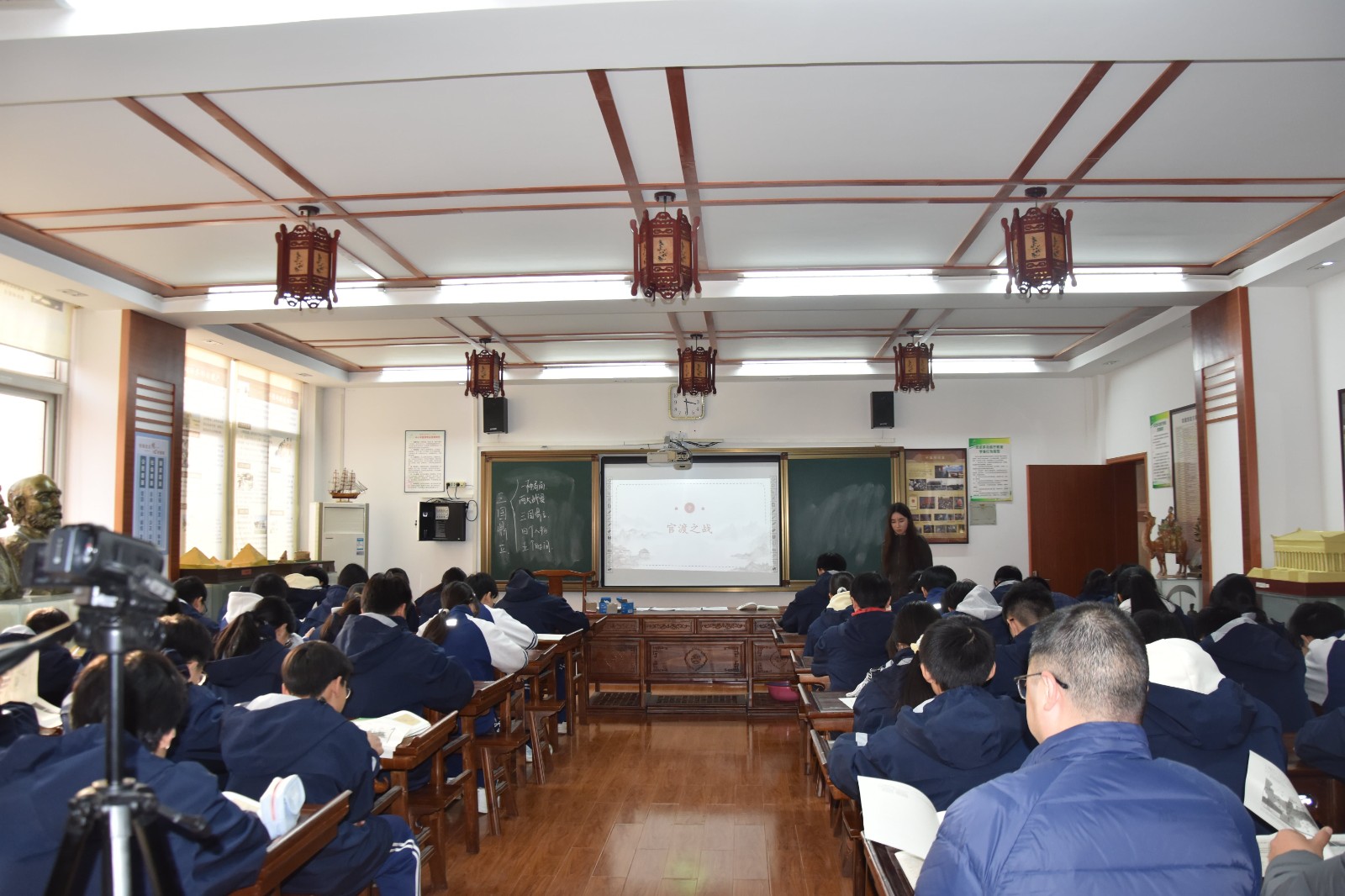 为提升青年教师们教育教学能力,促进青年教师不断进步与成长, 12月8日,郑州市第四十二中学文科青年教师“主体课堂”师徒汇报课活动在录播教室和历史功能室同时进行,副校长孙青山、黄涛和全体文科教师参加了此次活动。