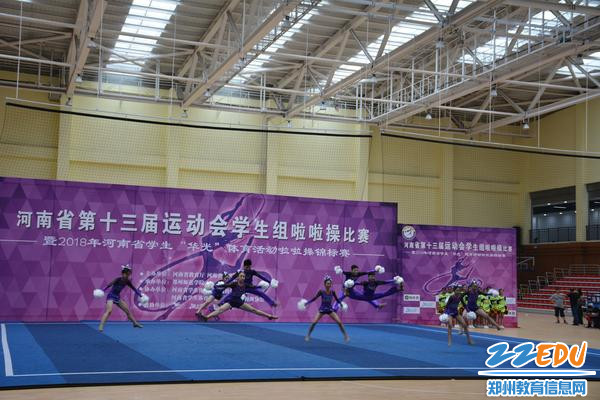 7月11日,郑州42中首先参加的是自选花球啦啦操比赛。队员们带着兴奋和紧张,面对省内强手如林的对手,充分展示了自己的实力,最终以第三名的成绩捧回季军奖杯!