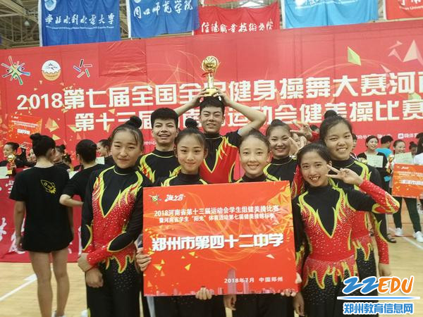 厉害了,我的健美操队!2018年刚刚过半,郑州42中健美操队已是捷报频传,收获满满。继去年12月份拿到全国健美操大赛单项冠军、团体第二名以及今年5月份连续第二年获郑州市健美操大赛特等奖后,日前,在即将闭幕的河南省第十三届运动会中表现更为突出,获得了自选花球啦啦操比赛第三名和自编健美操徒手比赛第一名的好成绩。此次夺冠成功,让这支成立不到两年的健美操队完成了第一个目标:分别在国家、省、市级的比赛中崭露头角,拿到冠军。